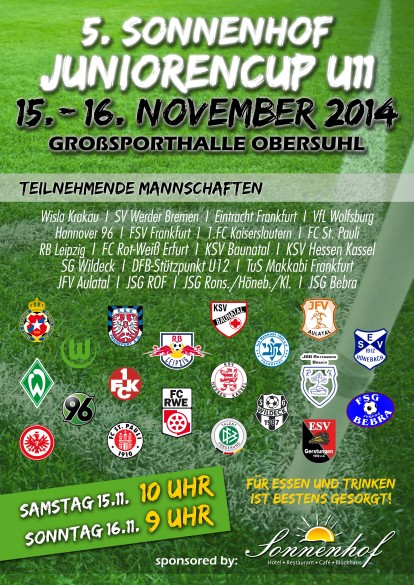 Wildeck. Das Organisationsteam setzt in diesem Jahr auf ein zweitägiges Turnier und erhöht die teilnehmenden Mannschaften von 12 auf 20. „Unser Turnier ist enorm gewachsen, die Qualität sehr gestiegen. Das spricht sich bei den Trainern der Nachwuchsleistungszentren rum“, stellt Jugendleiter Alexander Wirth voller Stolz fest. „Es ist uns aber auch äußerst wichtig, unseren Spielern in der Region dieses für sie vermutlich einmalige Erlebnis bieten zu können, gegen solche namhaften Mannschaften spielen zu können“, ergänzt der Jugendleiter. Daher werden sieben regionale U12-Teams an dem Turnier teilnehmen.